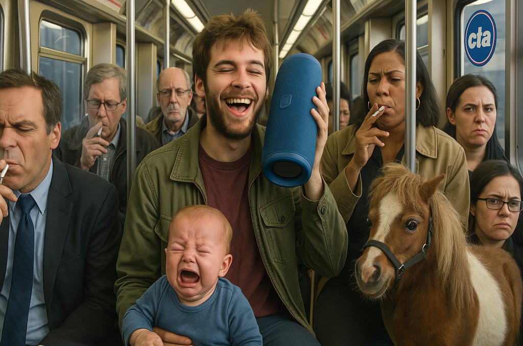 CHICAGO—Smoking, theft, and murder I can handle. I hardly even notice them on my commute anymore. What I cannot handle is people blasting their speakers on public transit. It makes this crazy train—me—go off the rails. Even worse is when they don’t have the decency to pay for ad-free. It ruins my commute and makes me feel like they don’t value me as a customer when I hop that turnstile.